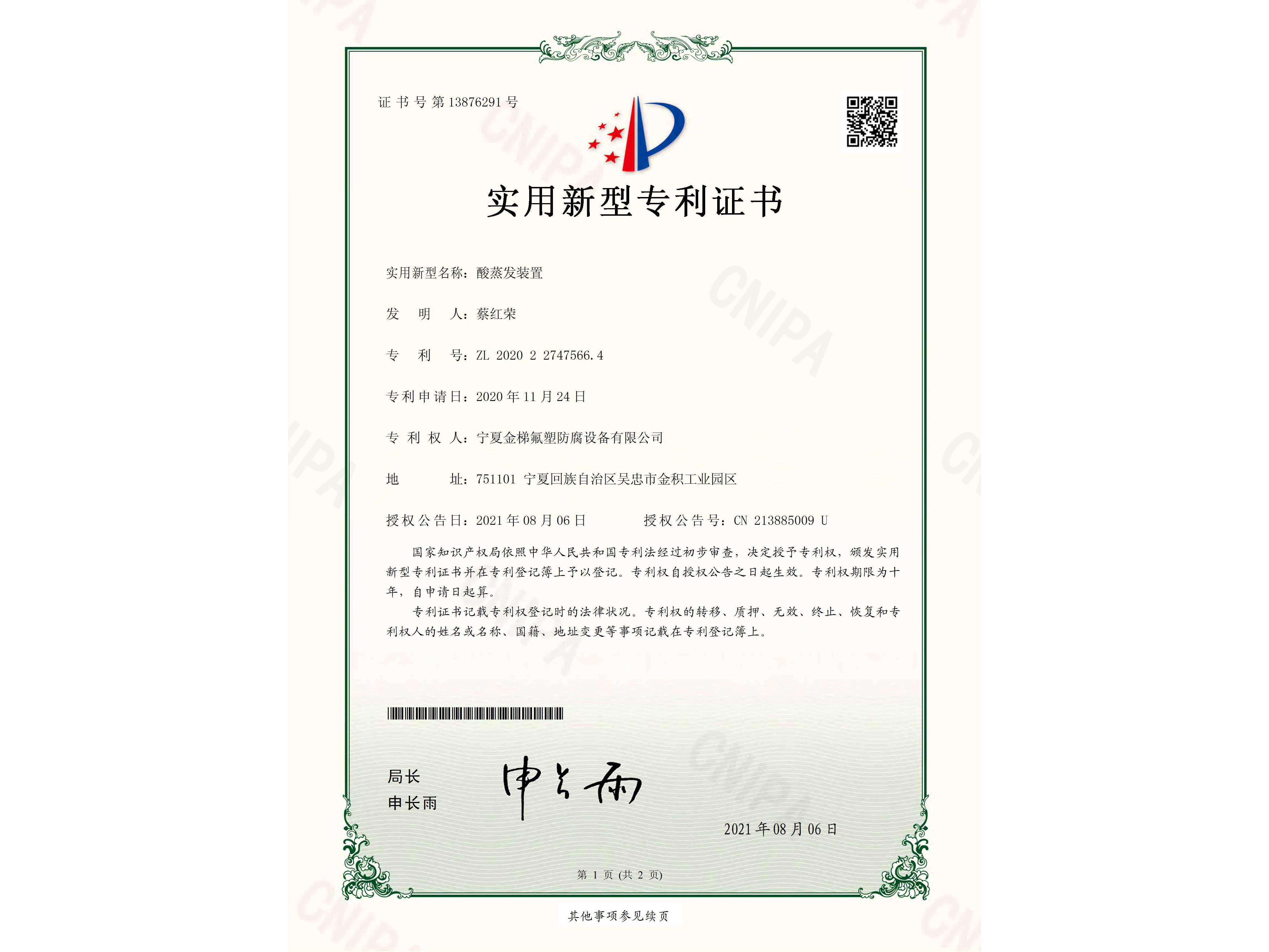 首页    实用新型专利    2017-2021年专利    酸蒸发装置_