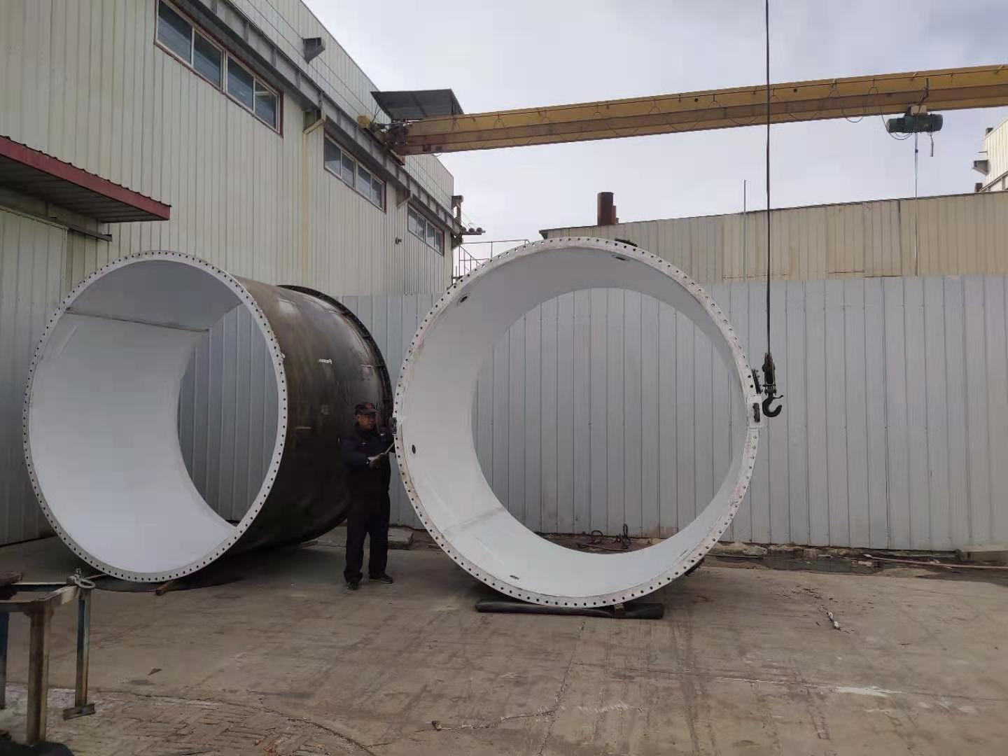 本公司以研发耐强酸、耐高温高压的高性能钢衬四氟设备防腐设备制造工艺为核心,针对不同类型钢结构件,采用不同衬里成型工艺技术,理论探索衬里成型机理,指导细化每一工艺步骤关键。对钢衬四氟防腐设备钢结构外壳明确提出结构特殊设计要求,运用焊带搭接焊接法,严格加强四氟衬里整体焊接成型,采用聚四氟乙烯表面活化技术和衬装耐高温粘接技术,实现了大型部件操作方便快捷、质量安全可靠的紧衬工艺;对管件等复杂结构钢衬聚四氟乙烯进行了优化设计改进;实践探索了等压成型预压操作压力时间控制和烧结工艺曲线具体先进数据,产品具备如下优势: